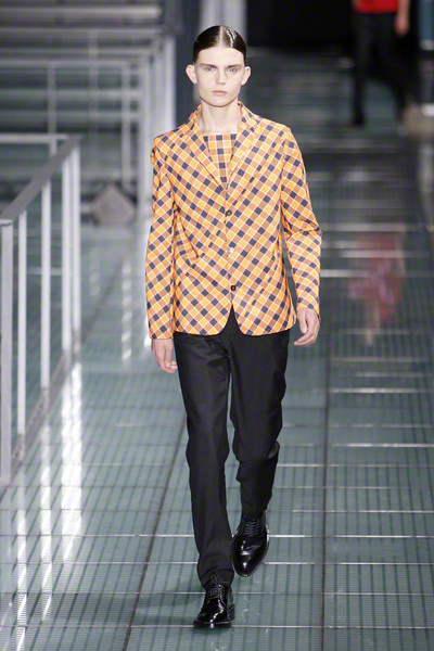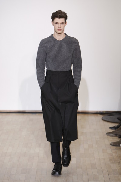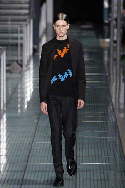Raf Simons still tries to push the boundaries of traditional menswear at Jil Sander without being silly or looking forced. By using the best fabrics and skills of experienced tailors he manages to present a collection that’s far ahead of others and also very daring. I mean: who would put mobile pockets at jackets or lift the waistline? This was a tailored wardrobe injected with energy, with a concrete focus on shape and a forthlooking approach, using texture and construction to define a confident masculinity.