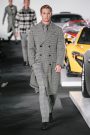 It was within the context of luxury cars (Porsches, Bugattis, Jaguars, Ferraris) that Ralph Lauren’s claim of connection between clothes and cars resonated. Unlike some of the cars, revolutionary when created in terms of design and performance, the clothes didn’t attempt reinvention. Rather they oozed the timeless chic in which Lauren believes deeply and which, as the surroundings indicated, has worked well. The show opened with the tony men’s wear fabrics he loves — mixed tweeds, checks and plaids. The extensive passage featured a women’s range of dressed-up (bustier over pants) and dressed-down (relaxed jacket, pants). Men’s looks included a re-fabricated motorcycle jacket over shirt and tie and a double-breasted coat belted over lumberjack plaid sweater.