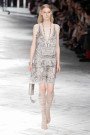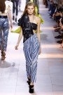This ss 2013 collection looked like a Cavalli in a calm, almost Zen mode. Instead of all sex appeal it was pure elegance and modernity. The show opened with a group of white looks in a clean silhouette with tailored jackets, crisp shirts and flared pants with extravagant treatments, like draped fringe and leather that was laser-cut and embroidered to look like lace. Prints were shown mostly in black and white, with a few muted neons.