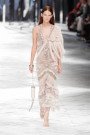 A light catwalk, serene pale models and a collection mostly made in shades of white and silver. Cavalli’s angels seemed to have all walked out of the same silver shower, but still there were more than enough variations in the designer’s summer looks. Like sheer snake printed pants, airy reptile dresses, floor sweeping gowns, loose printed pants with matching jackets and XL caftans.
