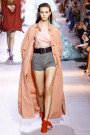 The soft palette and simple shapes had a calming effect on Cavalli’s extremely sexy items like the lean, elaborately beaded evening gowns with low cutouts on the hips, down the midriff and around the bust.