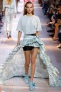 It was a super feminine collection even though lots of masculine influences could be seen. Like the sharp looking suits, the tough embossed leather jackets and the suit jackets (with black strips) worn with long evening gowns.