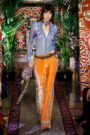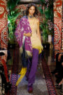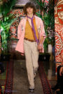 It was the first time Roberto Cavalli’s son Daniele Cavalli had some influence on the menswear-collection. His father asked him to add some youthful juice to the line. He presented an almost clean collection, where blue-tones and white played a central role plus some bold colors. The show was a romantic take on Riviera summers with influences from all over the world. Instead of playboys in flirty clothes came men dressed smart casual in natty blazers, suits in vivid fuchsia, yellow or purple/blue, and jackets with inserts of python.It seemed the young designer wanted to do a very good job, not too cool and hip.
