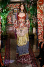 Not only will she be wearing colored velvet flared pants. They’re going to be embroidered from top to bottom too. Patchwork (a mix of floral and animal prints as seen on pants, tops and dresses) is going to be a big theme in her warderobe ass well. Airy maxi dresses and studded leather jackets fit in perfectly as extra fringes, lace up details, studs and ruffles will add to the seventies swing. Beaded jewelry, bee-like glasses, cowboy belts and skinny scarves in the mix. The Cavalli girl has always loved to live life to the max, she’s just turning things up a notch for next summer.