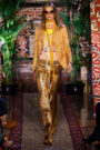 Going from the Giorgio Armani show to that of Roberto Cavalli is quite a change. From sober to over the top, from sophisticated to sexy. And we don’t mean that in a bad way. Cavalli was overwhelming as ever, presenting lots of color, gold, embroideries and – of course – animal prints.