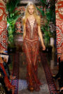A trademark isn’t a trademark for nothing. It means you love it, you own it and you’ll use it in any possible way. For Cavalli that means a collection full of his famous exotic elegance, wild prints, vintage looking denim, flashy metallics and bohemian glamour. And glamour by Roberto Cavalli means: sexy, sexy, sexy. Important ingredients that are inherent in every collection and his seductive take on clothing and women have provided lot’s of women to look their best. Wether in real life or on the red carpet. Since Brigitte Bardot wore his creations in Saint Tropez in the early ’70s, Cavalli has been the king of party glamour. And it is up to the new appointed creative director Peter Dundas, Pucci’s former head designer and former chief designer at Cavalli, to evolve the Cavalli staple and get everyone excited again. Yesterday was his first attempt.