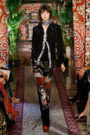 The boys walking the show looked tough in their leather jackets, statement coats and capes. They rocked suit jackets with croc patterns, whole looks in feather print, tiger printed blouses and chevron patterned coats. One of them even got away with wearing a poncho at the very end of the show.