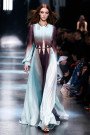 The soft palette and simple shapes had a calming effect on Cavalli’s extremely sexy items like the lean, elaborately beaded evening gowns with low cutouts on the hips, down the midriff and around the bust.