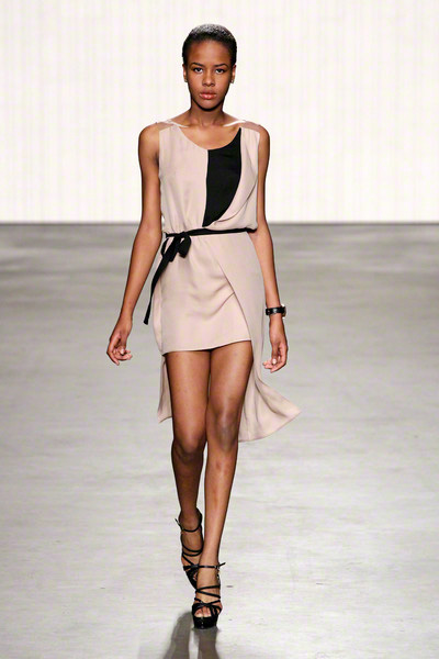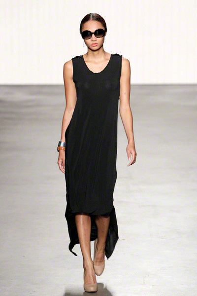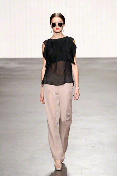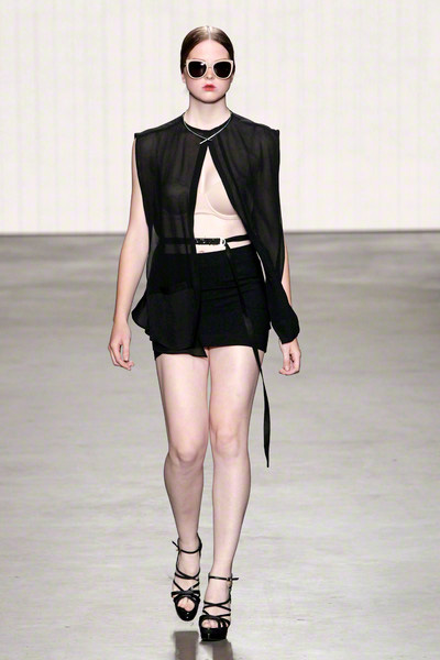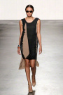 Nude, airy & sheer; three words that best describe Roya Hesam‘s spring/summer collection. The opening look, a girl dressed in a nude-colored sheer bodysuit with thin ‘spikes’ on the shoulders already set the tone for the rest of the collection. After that the models became better (less revealingly) dressed, although every creations still had it’s cutouts and openings.