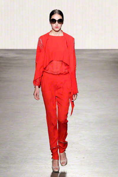 Roya sent a wide range of revealing black and nude shaded jumpsuits, evening dresses, maxi skirts and blouses down the runway. She added just a touch of color (a red shaded bra and a full red look) and some metallic accents (sequins/studs). Her models looked elegant in the airy designs and appeared ready for a late night dinner on a hot summer night (yet with all looks being extremely airy they might want to bring an extra vest).