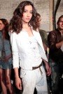 G Star took over the Hammerstein Ballroom again this season, pulling off an extraordinairy and well-choreographed fashionshow on an elaborately constructed runway flanked by celebrities (Lindsay Lohan, Taylor Momsen, Jared Leto, et al.). Models in all white denim emerged from behind scrims to plot their zigzagging, overlapping course through the theater—an army of tough, monochrome urbanites. As always, G-Star is experimenting with the ways in which denim can be worn. A long white tuxedo jumpsuit with revealing slits cut up each side, had a trompe-l’oeil bolero in the brand’s signature fabric attached at the shoulders. Teeny-tiny denim bikini shorts and fitted and flared blazers in a classic dark wash.