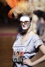 We saw a crazy pair at the Ungaro fashion show which had diamonds all over the glasses. At Alexander Wang they were very pointy. At Hussein Chalayan they were pentagonal. In the Moschino show a few pairs had the shape of a flower.