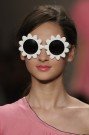 We saw a crazy pair at the Ungaro fashion show which had diamonds all over the glasses. At Alexander Wang they were very pointy. At Hussein Chalayan they were pentagonal. In the Moschino show a few pairs had the shape of a flower.