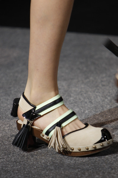 For some models walking the runway was a tough job in the past fashion weeks. Of course the shoes were to blame. Not only were they high as ever, they also had the craziest shapes. They seemd somewhat inspired by clogs and that made them look rather clumsy. The most outstanding examples of this ‘clog-shoe’ were those of Alexander McQueen. He showed some great fashion forward ones, which were no less than twelve inches high. With reptile prints they looked futuristic and animalistic at the same time. Passing by to the beat of Lady Gaga’s new song they indeed looked rather Gaga to us. Yet they might become a huge hit. At least McQueen wasn’t the only designer with clog-shoes in his show. Celine, Dior, DSquared, Givenchy, Bottega Veneta and Ferré showed some clog-variations as well. And not to forget Louis Vuitton and Chanel. Their Swedish clog-like shoes will probably become the most copied of all next spring. (Tess van Daelen)