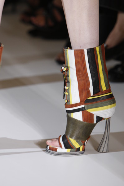 On the runway sandals were worn too. It must have been a relief for the models who mostly have to walk in towering high shoes like the crazy Versace, McQueen and Galliano shoes from this season.