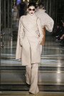 The show opened with mannish tailored coats with an extra lapel dripping, as if in a Dalí painting, over the shoulder, forming an offbeat sash.