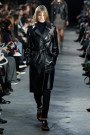designers Carol Lim and Humberto Leon from Opening Ceremony chose a future-focused them for their fall 2016 collection. They took their cues from Syd Mead, the artist who designed the cityscape in Blade Runner and the digiscape of Tron. Lim and Leon projected themselves into a future where people still need matter-of-fact outerwear to keep them warm while they’re riding around on their hoverboards, and miniskirts and over-the-knee boots to wear on their virtual reality dates, and slouchy knits and boot-cut jeans for casual dinners out. The futurism was mostly reflected in the collection’s holographic fabrications, which ran from lacquered croc print to burnout metallic swirls to high-shine velvet jacquard. One of the coolest textiles here was a fine knit embedded with multicolor crystals. Also cool: the Opening Ceremony tees and palazzo pants in a lamé-like silver fabric.