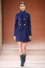 He staged the show at the Park Avenue Armory, which was transformed into a football stadium, with a Jumbotron capturing the fashion plays as models walked the runway in Ali MacGraw-inspired ’70s-prep silhouettes. They were wearing faux-fur stadium jackets with red-stitched toggles, wool cashmere ponchos, and several looks in bouclé plaid. The jacket of a shorts suit, for instance, was decorated with a knitted striped collar. Those athletic stripes added a sporty detail to just about every item, many of which were decorated with little pins and stars reminiscent of 1940s football paraphernalia.