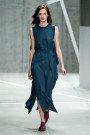 Depending on the season, Karan shifts between tailoring and dresses. This collection was mostly built on the former. All manner of jackets, from blazers to a leather bomber, were belted at the midriff above tapering trousers or narrow skirts. Her evening dresses had a modern spirit.