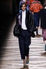 We started our morning with an all black Watanabe collection (including the strangely cut black wigs the models wore). Dark it was, dull not at all. With every single look the designer managed to portray his strong craftsmanship. He introduced round (and rectangular towards the end) shaped patchwork details and gave his creations a 3D effect by layering multiple textures on top of each other and bundling woolen, leather and fur pieces of fabric. Sequined pieces were in the patchwork mix too, followed by architectural Michelin-like coats, one could live in. Long dresses with straps of ribbon attached vertically onto sheer fabric formed the finale of what appeared to be clothes for a night out. Some looks might come across a little too bizarre for hitting your average night club, although seen independently, without the extreme show styling, some of the tops or bottoms could definitely work in any metropolitan city.