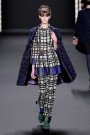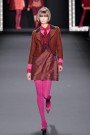 For his fall 2013 women’s collection Tommy Hilfiger drew from the same inspiration as for his men’s show: Savoile Row meets Ivy League. A key inspiration was Tommy Nutter, the man who gave Savile Row a swinging Sixties profile, dressing all the cool people like Beatles, Mick Jagger and Twiggy types included. Nutter loved fabric mixes — mash-ups of plaids, checks, tartans and more. Hilfiger opened his show with a group of coats and separates in various combinations, the mannish tailoring often offset by Mod-like mini kilts. The outerwear continued with printed shearlings, ponyskins, bonded khaki mackintosh coats and cozy toppers made of teddy-bear fleece.