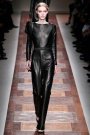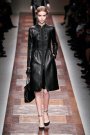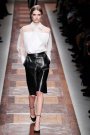 Pilati’s last collection was one of dark sensuality, something he presented before. The models looked perfectly glamorous and they were dressed in a style of aggressive femininity, thin black silhouettes, cinched waists and lots of leather. Jackets had strong shoulders, pants and skirts were lean and sleek. More intimidating were the dresses in colored mesh, like the harness of a knight.