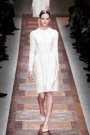 In the end the designer brought some lingerie-like dresses, soft and feminine with their lace-appliquéd, camisole-like tops and pleated skirts.
