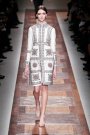 Folk seemed to be the theme of the Valentino-collection, but we couldn’t tell that from the clothes. Or is must have been the dresses with native motifs that reminded of Greece, Russia or the Orient. But the black leather that opened the show, told a different story. All in all it was a smooth, feminine collection with the familiar dresses and jumpsuits, softened with macramé seams and passementerie details.
