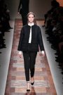 It’s been a while since Miucca Prada wove a common thread between her two lines, Miu Miu and Prada. But pantsuits are the only thing exciting to her after so many years of skirts and dresses, she explained to the press. And her pantsuits are still not ordinary. The Miu Miu clothes looked mannish and leisurely in a retro way. Jackets and matching ankle-length pants had roomy cuts, and were worn with buttoned-up blouses, scarves and ruffled, wide ties, all done in clashing patterns and color combinations.