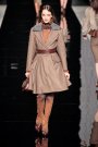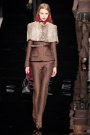 At Etro a traditional autumn palette set the tone of a collection full of outerwear and gentle country-life clothes plus lots of knits. Jackets and coats were belted and sometimes topped with astrakhan capelets. Special details were leather peplum belts, men’s-inspired swaggers, sheer underpinnings and a some body-conscious silhouettes.