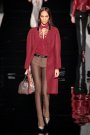 The fall-collection of Bottega Veneta exuded in precision and discipline, with lean silhouettes and narrow fit. There were tailored jackets and skirt suits cut straight. It was just simple, chic elegance in black, navy and maroon. Fabrics were rich and decorations modest, a big brooch, pendants and earrings. Controlled, but not forced.