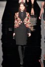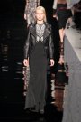 Peter Dundas, the British designer working for Emilio Pucci, surprised the audience with a complete different collection – far from Pucci heritage of paisley swirls and moving prints. He took his own wardrobe as a starting point. So masculine tailoring and fabrics dominated, as did black, and a minimalist hugging silhouette. The focus was at tight dresses with sexy splits and slits revealing slices of sheer, he also used velvet prints at sheer fabrics. Later the same idea got more bejeweled. For evening Dundas suggested beside the sexy dresses classic tuxedos, or tuxedo-elements.