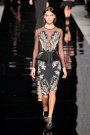 Cavalli took his party back to the sixties as he presented long sleeved, drop waisted dresses, mostly in black and white. His signature animal prints were mixed up with typical sixties prints, like a leopard print slowly evolving in a hounds tooth version.