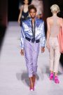 Lies Marjan designer Sander Lak wanted his spring collection to be personal. In his show-notes, he noted that the pieces were “put through a wash cycle, fabrics were squeezed, wrung, tumbled and hung up to dry.” That did not mean they looked lived-in or aged; on the contrary, the collection seemed fresh and spirited, perhaps because of his gently twisted slash-folded knits and his signature use of color. Guava and yellow, mint green and lavender, metallic orange and pink were all done in his signature slouchy drapy vibe.