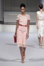 There were ladylike tweeds, windowpane plaids, and raffia embroidered linen garments. For cocktail hour, there were a number of modern dresses, like a strapless dress in navy gazar embroidered with black organza or a white swansdown tutu. The evening gowns looked like promdresses, some with just one shoulderstrap, the other with a matching bolero, ruffled or with embroideries all over.