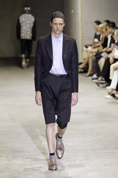 Kris van Assche seems capable of letting his severe, sartorial look go en soften it with lightweight and youthful tailoring. ‘Simplicity is the true luxury’, according to the designer. And so he presented sleeveless trenchcoats, lightweight linen parkas and paper-light jackets. Black, gray and sandywhite were his main colors. Low-slung trousers were tucked into sandals.