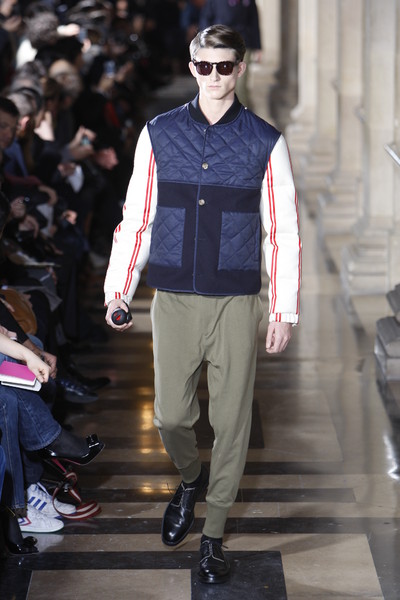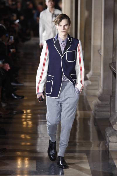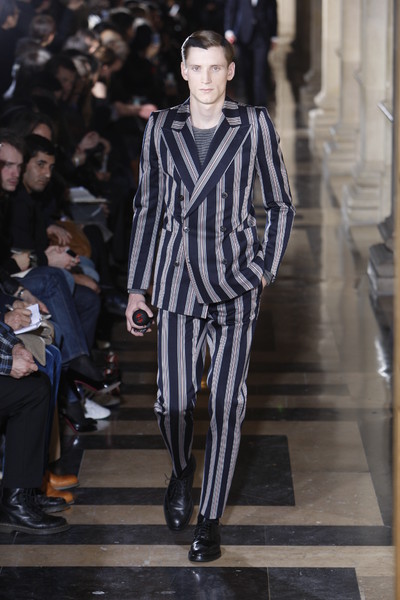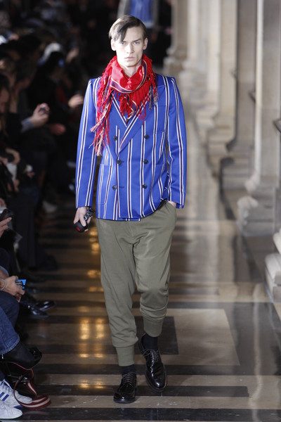 The Belgium designer focused at graphic details, think black (or red) and white stripes, piping, mixing checks and stripes and he took inspiration from the English jockeys. From dressed down sweat-styled trousers and bold electric blue separates to contrasting inserts, Van Noten’s man proved to be confident and stylish.