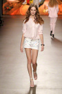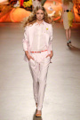 They wore wearable dresses in different colored parts and playful ruffled skirts. Printed hot shorts were worn with loose fitting tops, small colored belts and elegant heels. Like always at SIS there were a few suits too, a light pink version with a blouse in the same color being the most stunning.