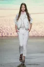 No doubt about it; Spijkers en Spijkers took us straight to summer 2014 with their vibrant beach-y collection. From a background of moving waves young models with messy beach hair followed each other in the (what seemed like a) never ending show. Playful skirts, loose blouses, wide dresses and high waisted pants brought us on a trip to the French Riviera. Girls looked sweet and cheerful, like a young Brigitte Bardot (when she was still a brunette), yet never too sexy for the SIS brand. They sported stripes and checks in classic shades of red, white and blue. Small belts and beaded necklaces added a colorful touch, while floral prints and bright organza fabrics revived the show towards the end. Forget hot summer destinations like Ibiza and Mykonos, next year Côte d’Azur it is!