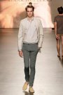 Inspired by the prewar Japan and traditional Japanese music, Min‘yō (the name of the collection) representing the idea of continuation, Sjaak Hullekes presented a very well tailored, wearable and cohesive collection. To the sounds of a live cello in the corner of the catwalk (yet another form of live music this week) the male models appeared. They wore small fitting pleated pants, elegant shirts, non-lined safari jackets and handmade nature-inspired loafers. And Sjaak’s favorite piece, a terracotta shaded safari jacket with a collar and pockets in a contrasting fabric, indeed was one of the showstoppers of the collection.