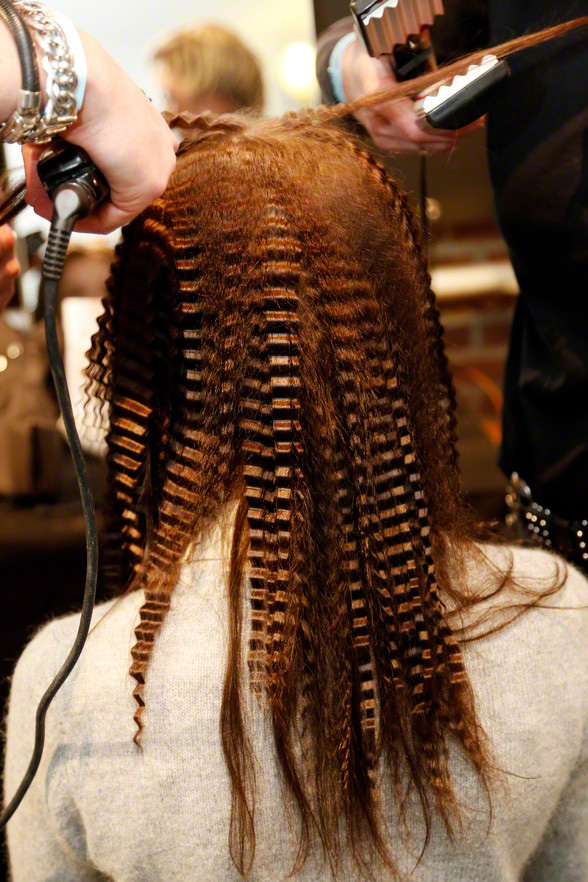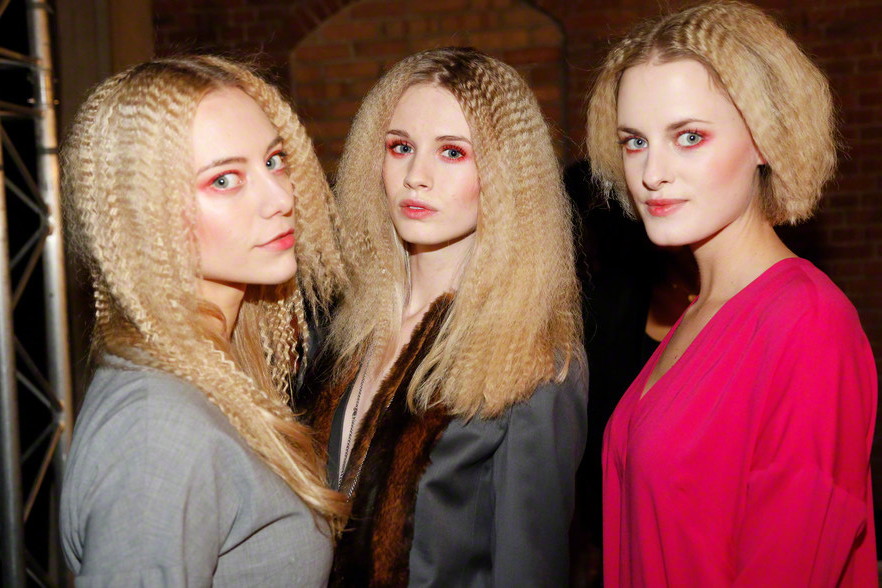Take a look backstage at the show of Sophie#1234567. Hair- and make-up artists worked hard to get the models ready in time.