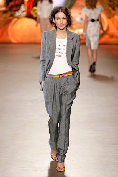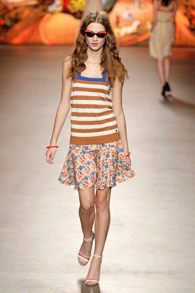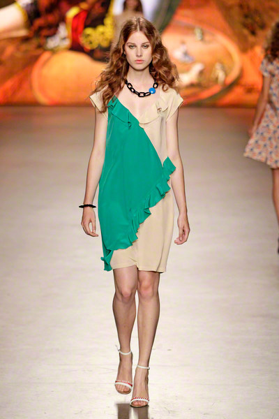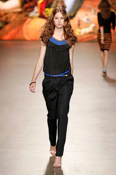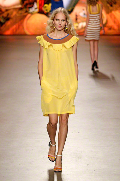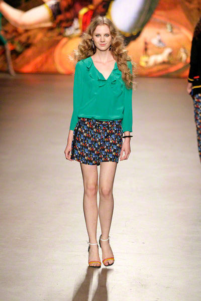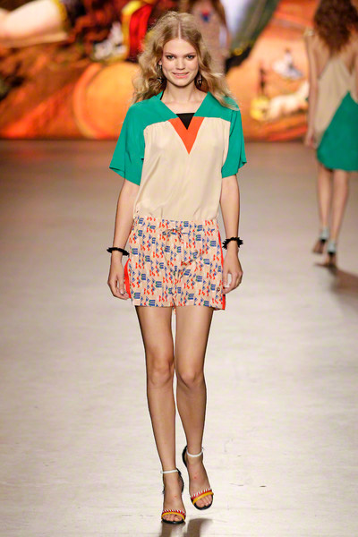 They wore wearable dresses in different colored parts and playful ruffled skirts. Printed hot shorts were worn with loose fitting tops, small colored belts and elegant heels. Like always at SIS there were a few suits too, a light pink version with a blouse in the same color being the most stunning.
