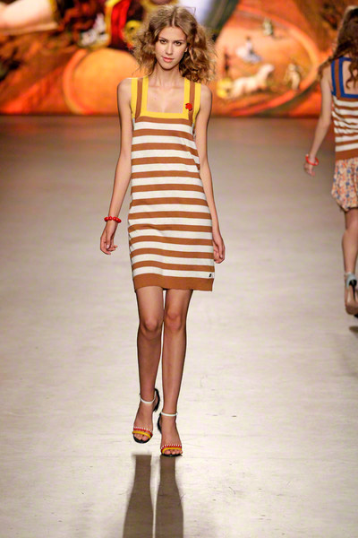 “The clothes will have a tight fit and come in colors like rose, pistachio, amber and nautical blue. There are some bright Au Bain de Soleil prints as well. We used cotton, crêpe de chine and some very comfy jerseys. It’s just a fun collection, so we’re very much looking forward to the show.”