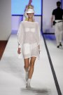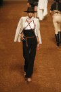 The Emporio Armani show for fall/winter 2010 opened with a few groups of models wearing different sets of sportswear. The clothes were often made out of sporty rubber and most models wore crazy bonnets to finish their looks.