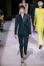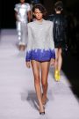 The spring summer collection Tom Ford presented was a classic one: the calculated decadence we know so well from Ford, rendered in a split between athletic-derived sportswear and power-woman goddess gowns. Crossover of athletica into the primary daywear vernacular aside, Ford loves tailored polish. He opened with a bold-shouldered pale pink satin tuxedo jacket over a liquid metallic top and short-shorts, rolled at the hem. Unlike the old Gucci days when he worked the daylights out of a single look, here he offered options, some approachably chic, others challenging to all but the most secure of attitude and body image: classic pantsuits, dressed-up dark denim, short leather trenches and racy jumpsuits. One, a long, backless drink of water in white crepe, rang the bell of a long-ago Gucci dress with a cutout abdomen. An infusion of wit came in an only Tom take on the twinset: slouchy chain mail shoulder bag and matching briefs worn with a louche pale pink top. As for the eveningwear, strong shoulders and sequined sleeves transported classic draping from ethereal to aggressive, as glam as it gets.