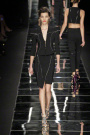 From the flowing, moody jewel-colored Seventies style to a more constructed, hard and geometric jazzy style – that’s the turn Gucci-designer Frida Giannini took this season. And this anniversary-collection looks quite different. Polished as ever, but with jazzy influences (flapper-dresses), references from the Twenties and Thirties, Louise Brooks, African Art and Man Ray. But also the geometric lines of the art deco style the American way – as in the Chrysler building – and the metallic surfaces. Giannini herself said in the show-notes she wanted to show an optical side of femininity, a sculptural glamor.