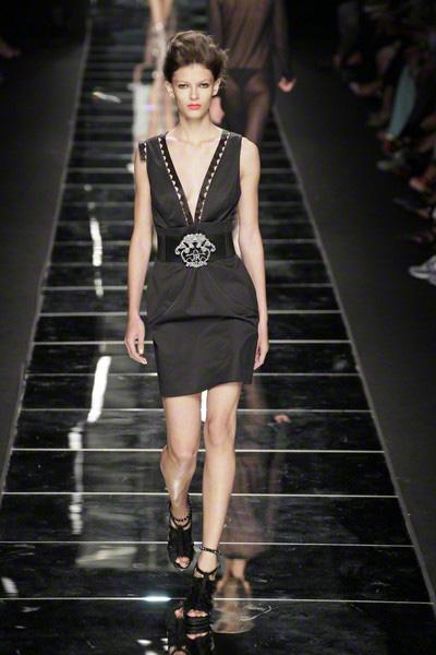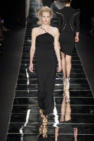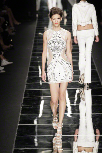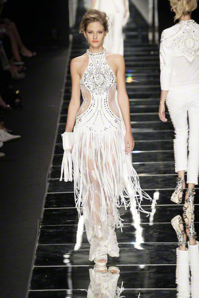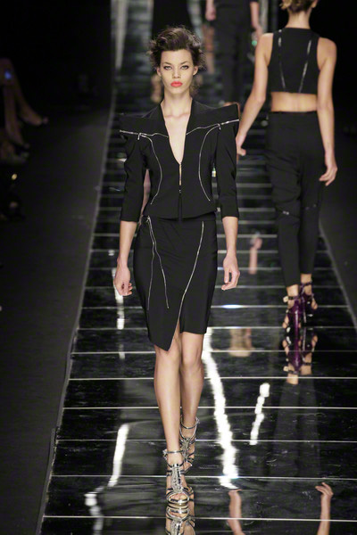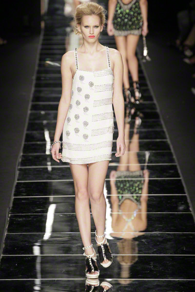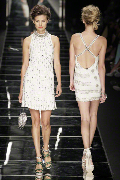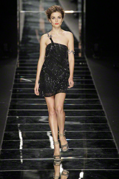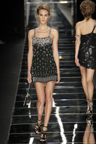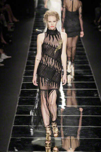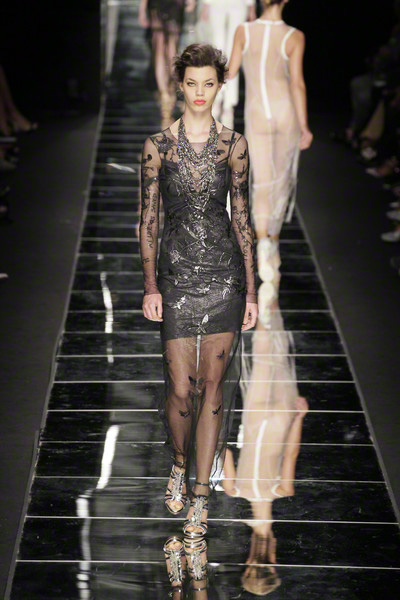 With thick eyeliner and colorful lips Richmond’s models paraded on the Milan catwalk today. They looked sexy to the max in their shiny, see-through, embellished dresses. As the show went on the level of sexiness increased.