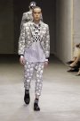 After about fifteen looks Bikkembergs’ theme changed. Tomato prints were introduced (will vegeatbles become a hit this time?) and the models were more dressed. Leather jackets, cardigans, soft suit jackets and sweaters with a large star print were the highlights of the second half of the collection. Mostly done in classic black and white yet also in pink and green.