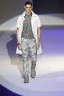 Not soccer but diving was the inspiration for Bikkembergs’ new collection. Some of his muscled models came onto the runway wearing nothing but a towel and a bathing cap. A few appeared soaking wet; as if they’d just got out of the swimming pool. And if that was not enough reference to diving, there were some prints of diving people too, as well as the word ‘jump’ on some pieces of clothing.