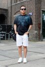 Fresh faced male models walked the runway at Mevan Kaluarachchi’s show this week. They sported the young Sri Lanka born designer’s perfectly tailored collection, which contained just about every piece a man needs during summer time. Like sand colored shorts, denim shorts and even light blue colored shiny shorts. Like slouchy striped pants and narrow pleated pants. Like (slightly transparent) white Tees and longsleeves. Like a cardigan with a baseball fit and a sportive checked jacket with leather details. Like short leather jackets, denim jumpsuits and shiny hooded jackets. Like duo colored sleeveless tops and white shirts. Like a decent leather bag, a cool pair of sunglasses and some casual sandals, all given the Mevan twist.